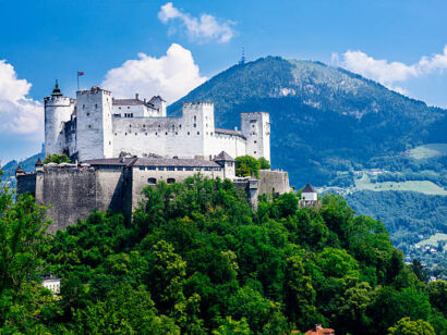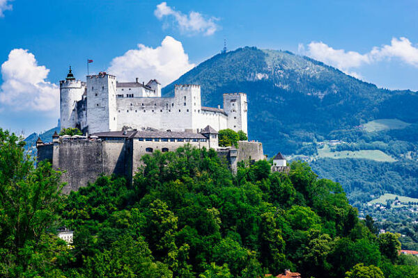 - Chiêm ngưỡng Lâu đài Hohensalzburg – pháo đài lớn nhất thế giới. Với vẻ đẹp đậm chất cổ xưa cùng những phong cách kiến trúc đẹp tựa như trong truyện cổ tích là những điều mà các du khách nói về nơi này. Hơn 800 năm lịch sử đã trôi qua nhưng pháo đài này chưa từng bị tấn công. Nó thậm chí vẫn giữ nguyên được lối kiến trúc cho tới hiện nay. Lâu đài cũng tham gia vào chiến tranh với vai trò: doanh trại, kho lưu trữ hay nhà giam.