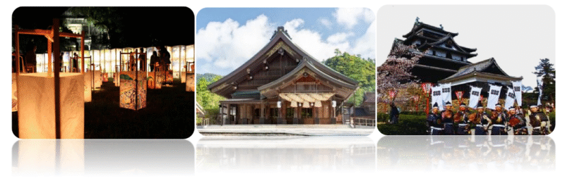 - Izumo Taisha Shrine, – đền linh thiêng được ví như cánh cổng dẫn đến thế giới thần linh, nổi bật với cuộn rơm trừ tà nặng 4,5 tấn, biểu tượng của vùng Shimane.