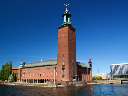 - Stockholm City Hall – Tòa thị chính Stockholm: là điểm nhấn trên bản đồ kiến trúc thế giới và nơi được người dân Thụy Điển xếp hạng là công trình kiến trúc hiện đại đẹp nhất cả nước. Lên đỉnh tháp của tòa thị chính có thể ngắm toàn cảnh thành phố Stockholm. Tòa nhà nổi tiếng với Sảnh vàng – nơi trưng bày đồ chạm, khảm bằng vàng và pha lê, Sảnh xanh – nơi hàng năm diễn ra lễ trao giải Nobel danh giá của các hạng mục còn lại với sự hiện diện của đức Vua Thụy Điển.