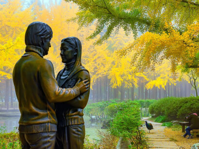 - Đảo Nami – Hòn đảo hình bán nguyệt xinh đẹp với khí hậu mát mẻ, là nơi các đôi tình nhân và du khách khắp nơi phải ghé thăm ít nhất một lần nếu có dịp đến xứ Hàn, nhất là dịp thu sang, hòn đảo được nhuộm màu vàng tươi lãng mạn của những hàng cây ngân hạnh, thủy sam, …